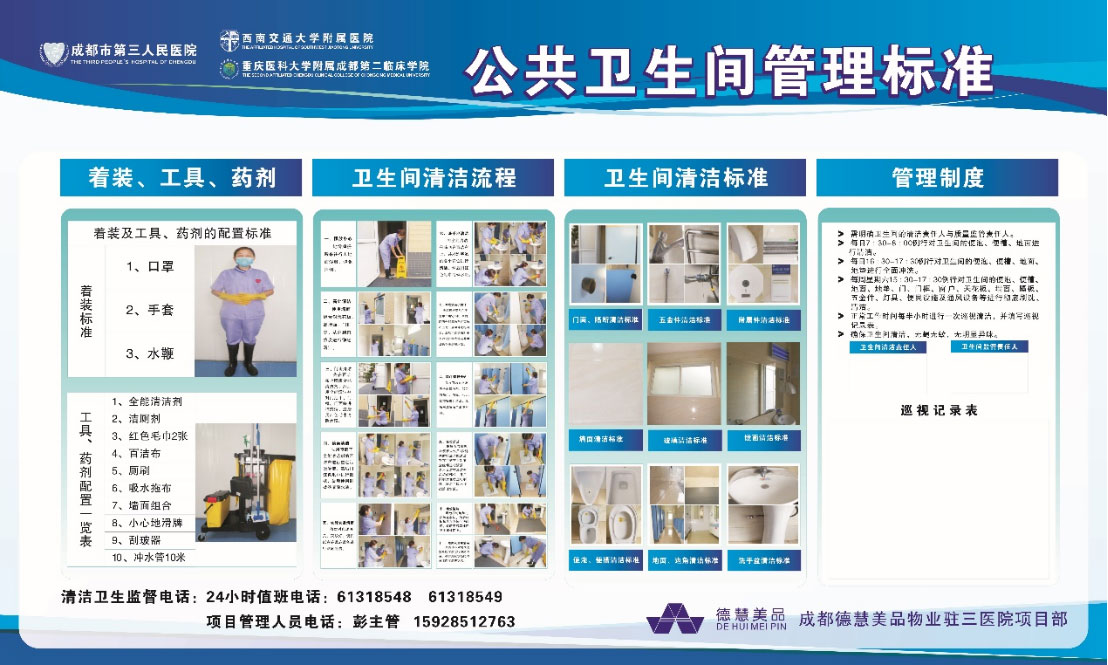 我公司和西安市質量技術監督局共同起草西安市《公共廁所管理與服務規范》,全國醫院企業唯一僅有的標準體系。1、德慧美品的信息化系統是完